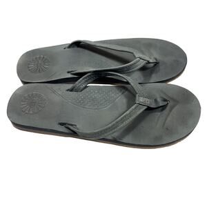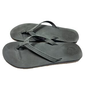 UGG Seaside Flip Flops Gray Soft Leather Beach Pool Casual Comfort Sandals W8