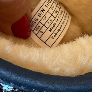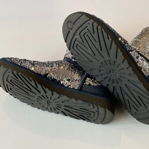 UGG Sequin Short Sheepskin Boot Blue Silver Size 9 LIKE NEW