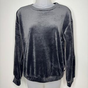 In excellent condition. Color is called Ink Black. Made from velvet fleece for a heavenly-soft feel, this crewneck pullover features subtle balloon sleeves for a flattering, relaxed look.