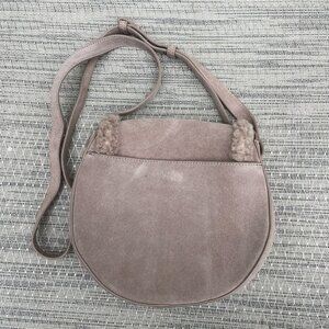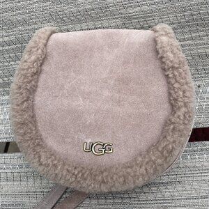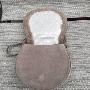 UGG Sharon Crossbody Small Bag Cow Suede Sheepskin Trim Caribou Color Excellent