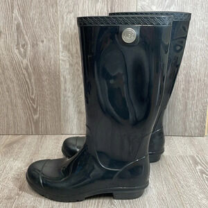 UGG Shaye Tall Rain Boot Black Patent Sheepskin Insole Size 6