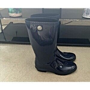 UGG Shaye Waterproof Tall Rain Boots Women’s Size 10 High Gloss Navy 1012350