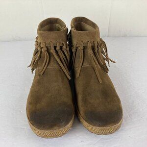 UGG Shenandoah Women Sz 10 Brown Fringe Suede Ankle Moccasin Bootie Side Zip