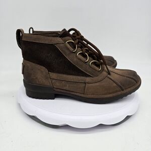 UGG Shoe Women's 6 Heather Duck Rain Ankle Boot Coconut Shell Brown Leather