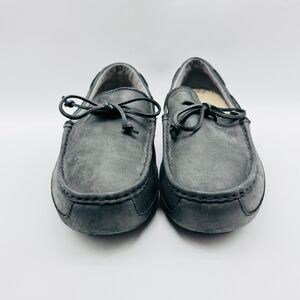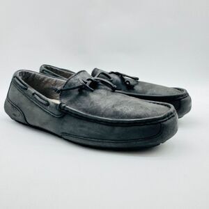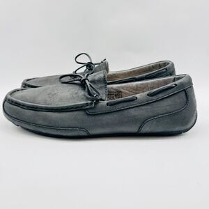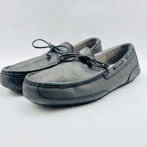 UGG Shoes Mens 12 Black Leather Loafers Chester Sherpa Lined Driving Slippers