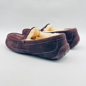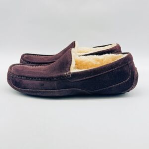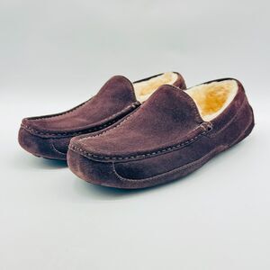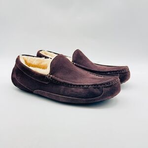 UGG Shoes Mens 9 Brown Suede Loafers Sherpa Wool Lined Driving Slippers