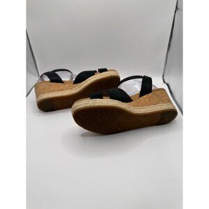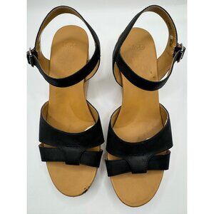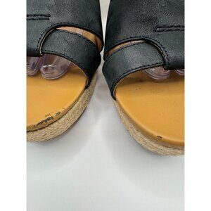 UGG Shoes Women 11 Black Leather Ankle Strap Platform Cloverdale Wedge Sandal
