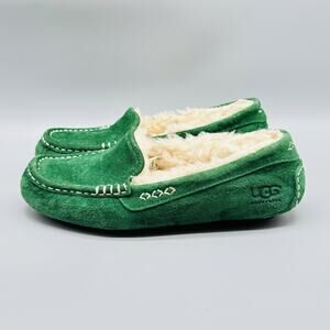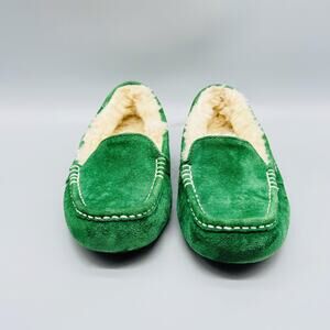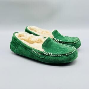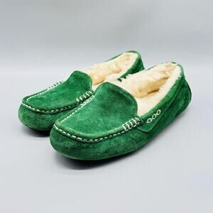 UGG Shoes Womens 5 Green Suede Ansley Shearling Moccasin Slippers Australia