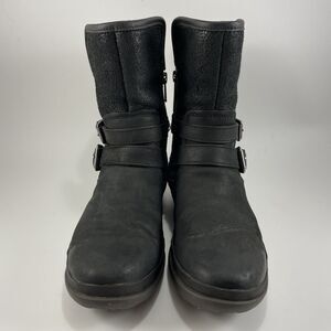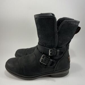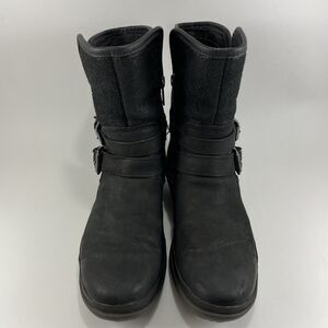 UGG Simmens Double Buckle Leather Boots Womens Size 6 Black Waterproof Leather