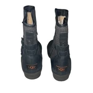 UGG Simmens Womens 10 Waterproof Boots Black Leather Suede Zip Buckle Wool Lined