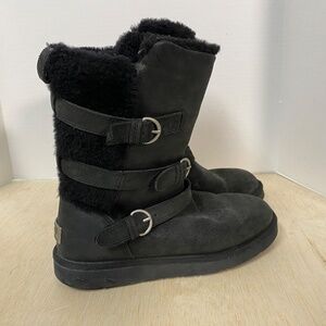 UGG Size 9 Becket Mid Sheepskin Black Boots Women USA EUR 40 • Sheerling • Tall