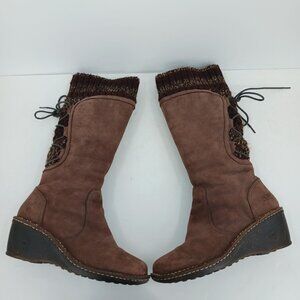 UGG Skylair Brown Leather Wedge Shearling Knit Tall Boots Size 9 Lace Up