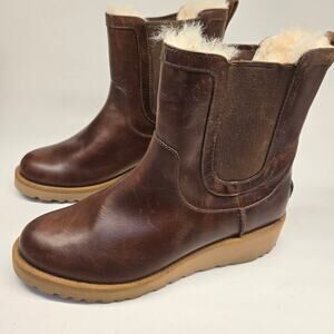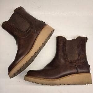 UGG Slim Britt 1013851 Brown Chestnut Leather Wedge Chelsea Boots, Size 7.5