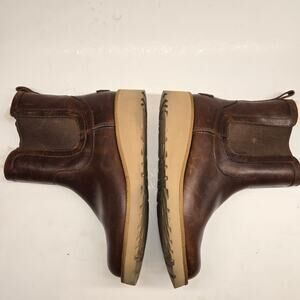 Slim Britt style No. 1013851, brown leather uppers with heel pull tab, Chelsea gore inserts, shearling lining and footbed. Added arch support. Wedge heel approx. 1.5" high, Treadlite outsole for lightweight traction. Composition: Leather outer, genuine shearling inner