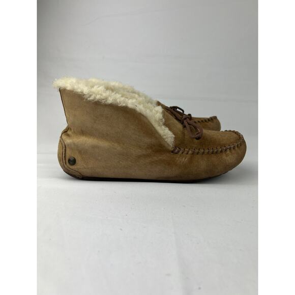 UGG Slippers Women’s 7 Chestnut Shearling Suede Leather Moccasin Indoor Outdoor