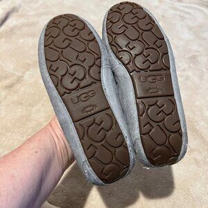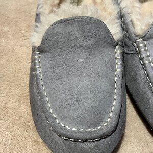 UGG Slippers Women's Light Gray Suede Sheepskin Ansley Moccasins Slip On Size 7