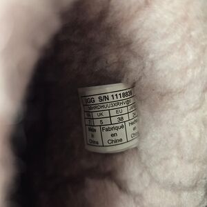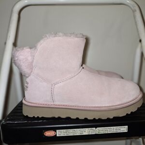 Cozy UGG boots in soft pink shearling. Perfect for warmth and style.