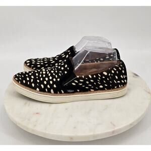 These rare UGG Soleda sneakers feature genuine cow hair in a bold spotted print for a statement look that's still comfy enough for everyday wear. Leather-lined interior with a cushioned sole for all-day comfort. Easy slip-on style.