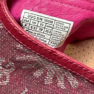 Excellent condition. Used. Women’s size 8 Color: Pink or Magenta. Wedge heel. Upper: Textile and leather. Leather lining. Outsole Rubber.