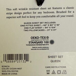 UGG Queen Sheet Set in dusty blue grey stripe.