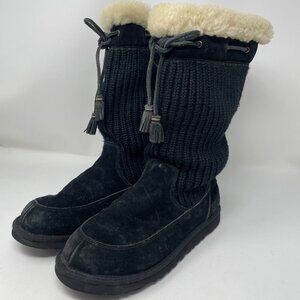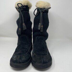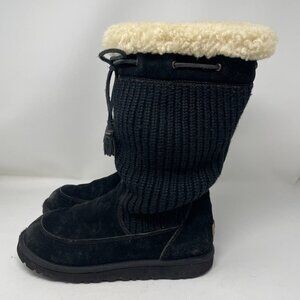 UGG Suburb Black Crochet and Suede Boots Size 6