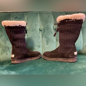 UGG Suburb Crochet Size 6 Suede Sweater Lined Boots