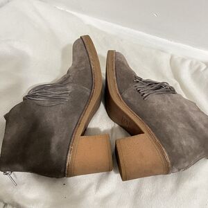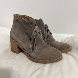 UGG Suede Ankle Boots Womens Size 8 Taupe Block Heel Tassel Zip Booties