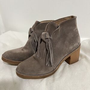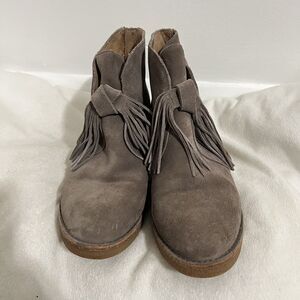 UGG Suede Ankle Boots Womens Size 8 Taupe Block Heel Tassel Zip Booties 1018642