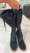Chic black suede boots with stylish laces. Comfortable heeled design. Perfect for versatile wear.