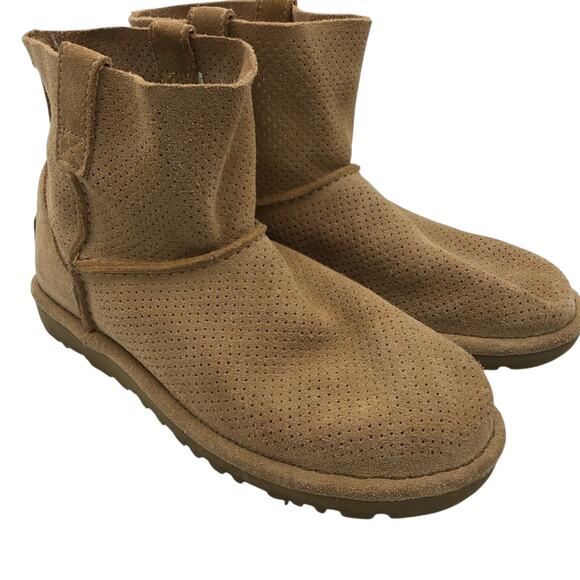 UGG Suede Mini Ankle Chesnut Slip On Boots Womens 7 Snow Winter Tan Cabincore