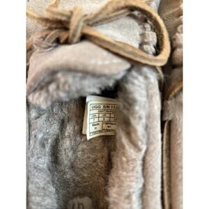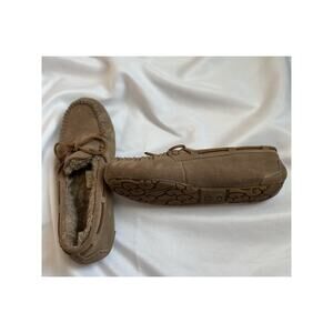 UGG Suede Shearling Moccasin Slippers Brown Bow Tie Women’s Size 7