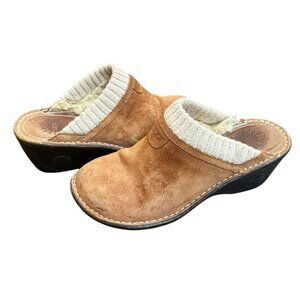 UGG Suede Slip-On Clogs Knit Trim Shearling Lining Chestnut Brown Outdoor Size 8