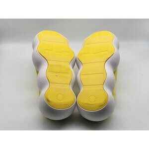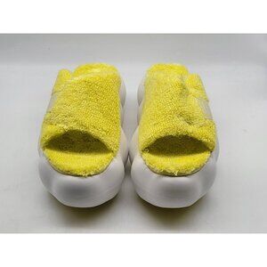 UGG's Women's Sugarcloud Slide Sandals come in a vibrant yellow terry material. These shoes feature a 3" platform and a slipper-like comfort, perfect for casual wear. They come in size 8.