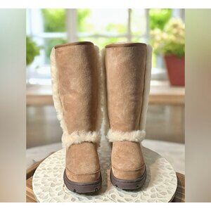 UGG Sunburst Tall Sheepskin Boots Chestnut Brown Women’s 7 / EU 38 Fur Lined