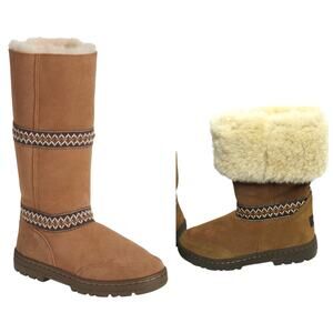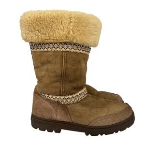 UGG Sundance Boots Size 9 Brown Genuine Leather Pure Wool Lining Fold Over
