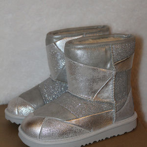 UGG TODDLER PATCHWORK LEATHER BOOTS NEW SILVER