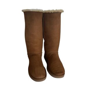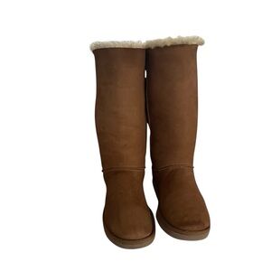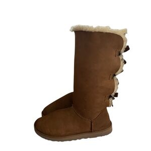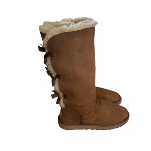 UGG Tall Bailey Tan Winter Bow Boots with Suede Exterior Size 10