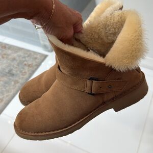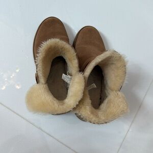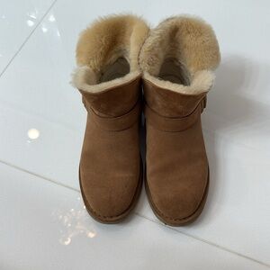 Stylish UGG ankle boots. Soft tan suede. Cozy cream lining. Perfect for casual wear.