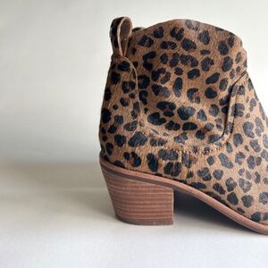 UGG Tan Black Animal Print Fur Suede Almond Toe Ankle Boots size 7.5. Heel 2.5, zipper closure. In great condition, gently worn a few times, a few small scuffing on the heels (see pictures).
