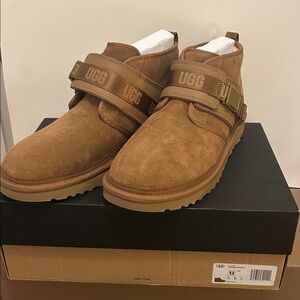 New with tags and original box. Men’s size 13 Chestnut color UGG neumel boots with fuzzy lining and sturdy snap buckle going across.