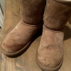 Priced to sell quickly!! Warm tan boots with soft shearling interior. Ideal for winter comfort. Note the water stains on the front toe of the boots. Besides the stains, great shape. Barely worn.