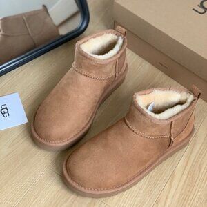 Cozy tan sheepskin boots by UGG. Perfect for warmth and style.