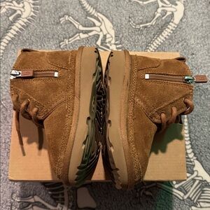 Cozy tan suede boots with side zipper. Ideal for everyday comfort.