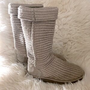 UGG Tan Tall Knit Cardy Pull-On Comfy Sweater Boots