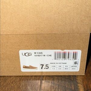 Stylish tan loafers with gold accents. Comfortable slip-on style. Perfect for casual outings.