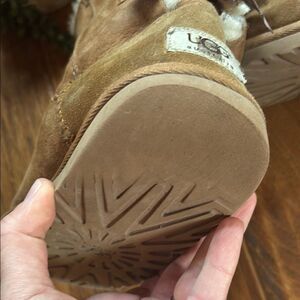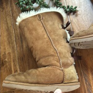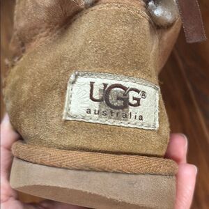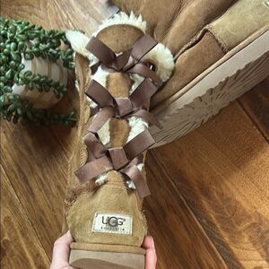 UGG Tan Shearling-Lined Boots with Ribbon Detail