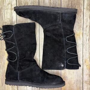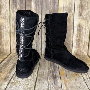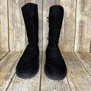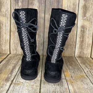 UGG Tasman Black Suede Rear Lace-Up Embroidered Boot Womens Sz 9