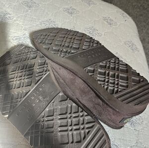 Luxurious suede slip-ons for ultimate comfort. Ideal for casual wear. Can't find size but measures 11 inches. Some fur missing at inside edge