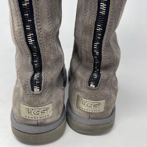 UGG Taupe Gray Knightsbridge Back Zip Sheepskin Shearling Tall Suede Boots Sz 7