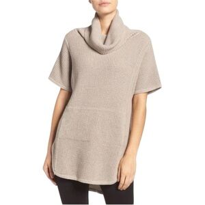 Women’s UGG Taupe Tan Selby Cable Knit Short Sleeve Turtleneck Tunic Sweater Mini Dress size Medium